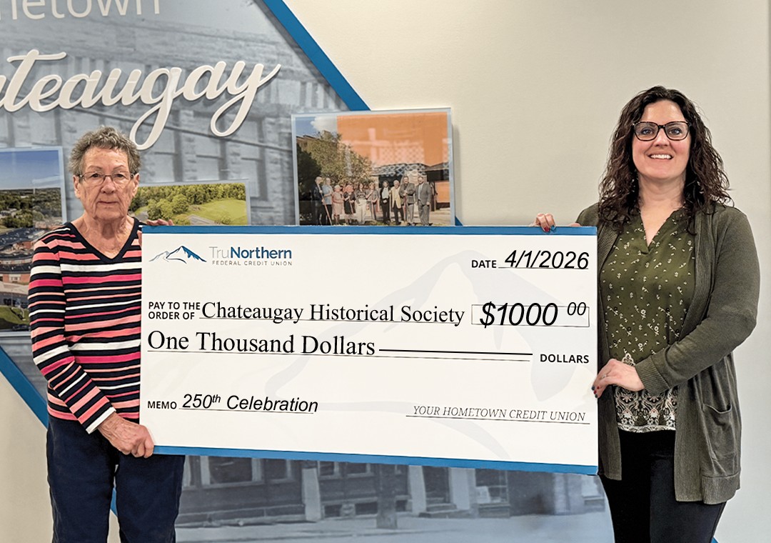 Pictured in the accompanying photo are: Mary Humiston, Society president, and Robi Monica, Chateaugay Branch Manager.